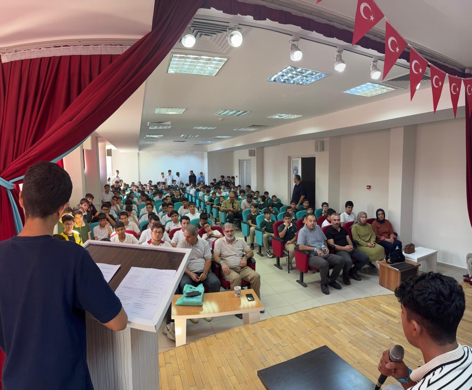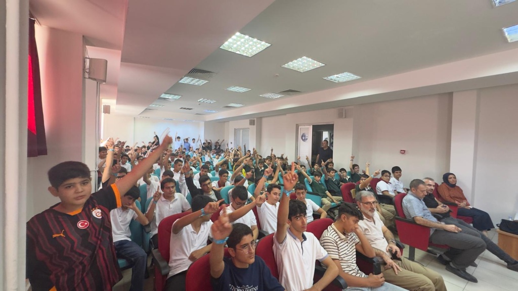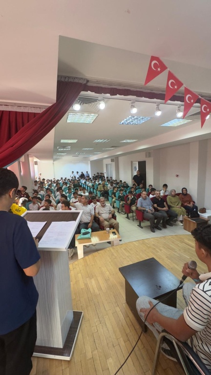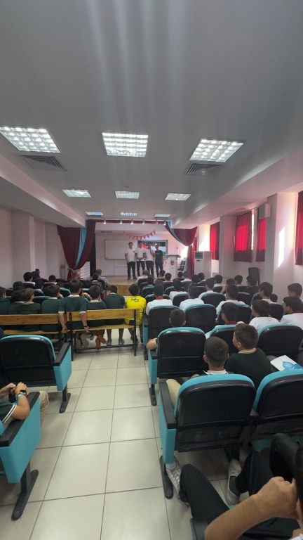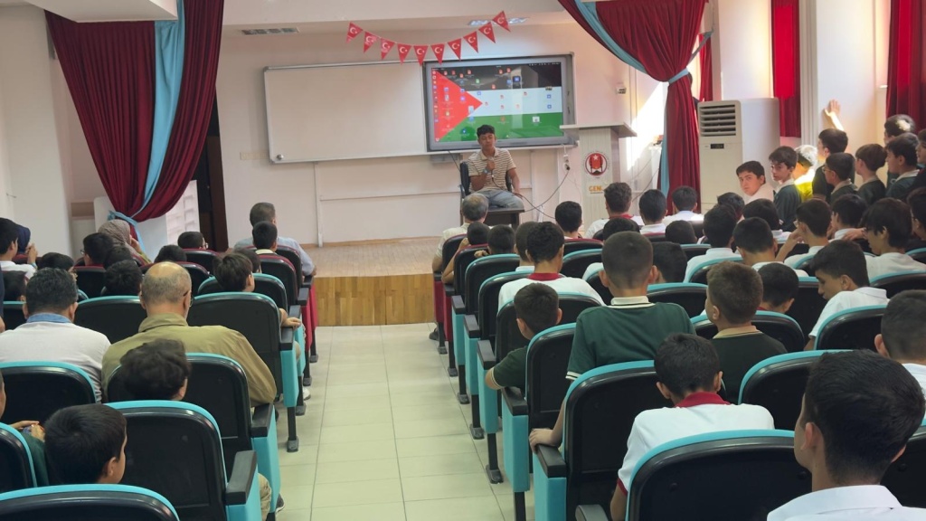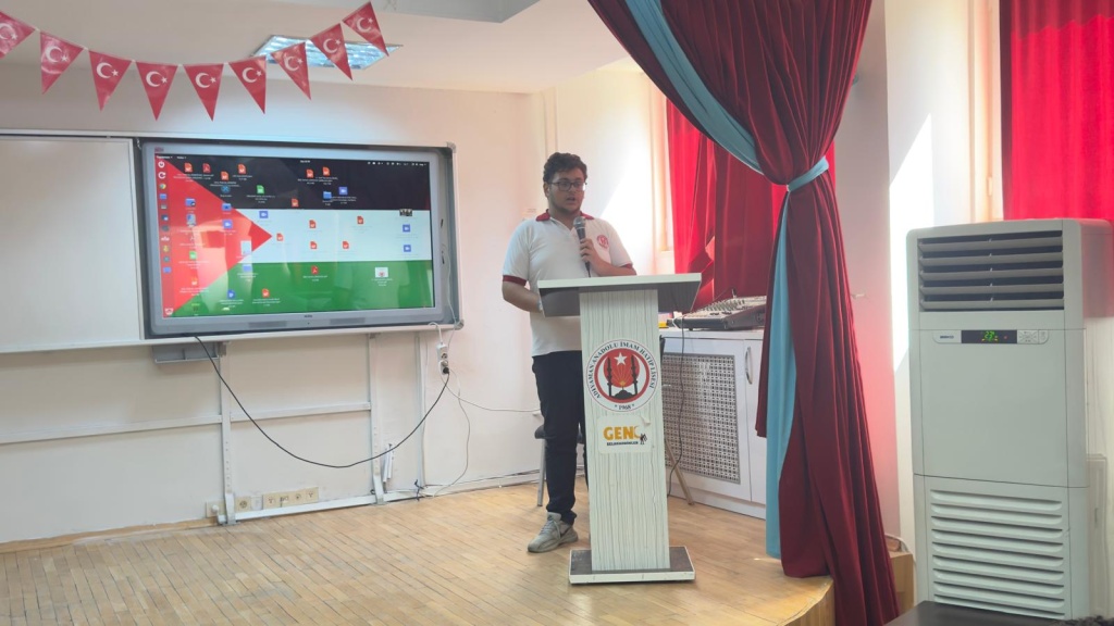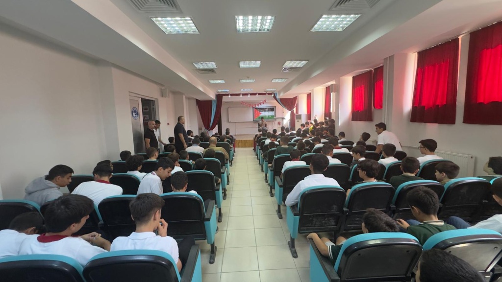 İnsanoğlunun tanık olduğu soykırımlardan birinin yaşandığı Gazze’ye dikkat çekmek ve “Küresel Sumud Filosu”na destek olmak amacıyla okulumuz konferans salonunda anlamlı bir program düzenledik. Program kapsamında; terör devleti İsrail'in Gazze’de aylardır gerçekleştirdiği soykırım, abluka, bombalama ve temel yaşam haklarına erişimin engellenmesi gibi insanlık dışı uygulamalarına karşı uluslararası kamuoyunun dikkatini çekmeyi hedefleyen “Sumud Filosu” hakkında öğrencilere bilgi verildi. Etkinlikte yapılan sunumlarla, hem Gazze’de yaşanan dram gözler önüne serildi hem de dünyanın dört bir yanından yola çıkan vicdan sahiplerinin Filistin halkına umut taşıyan mücadelesi anlatıldı. Programın tertip edilmesinde emeği geçen Meslek Dersleri öğretmenlerimize şükranlarımızı sunarız.