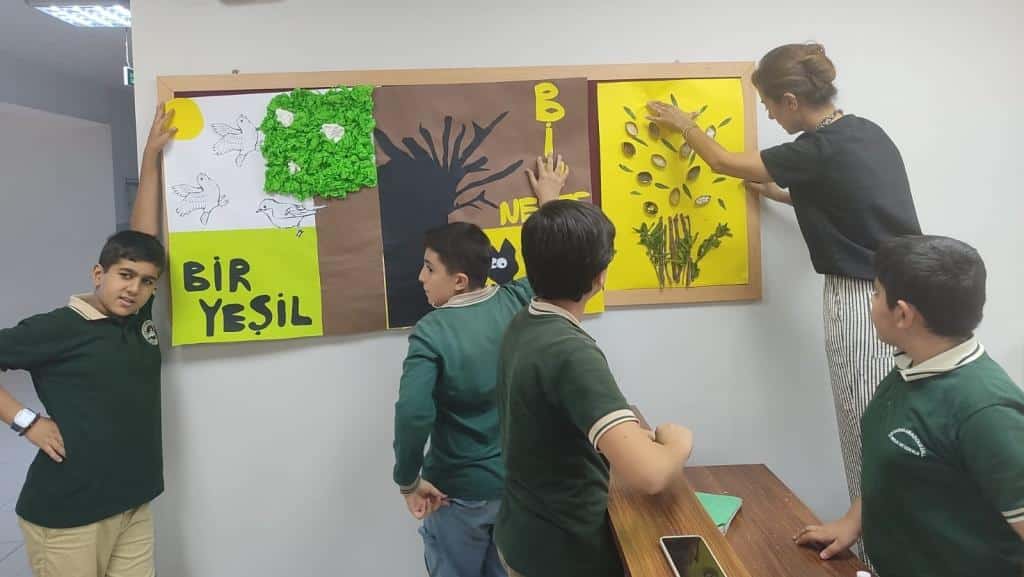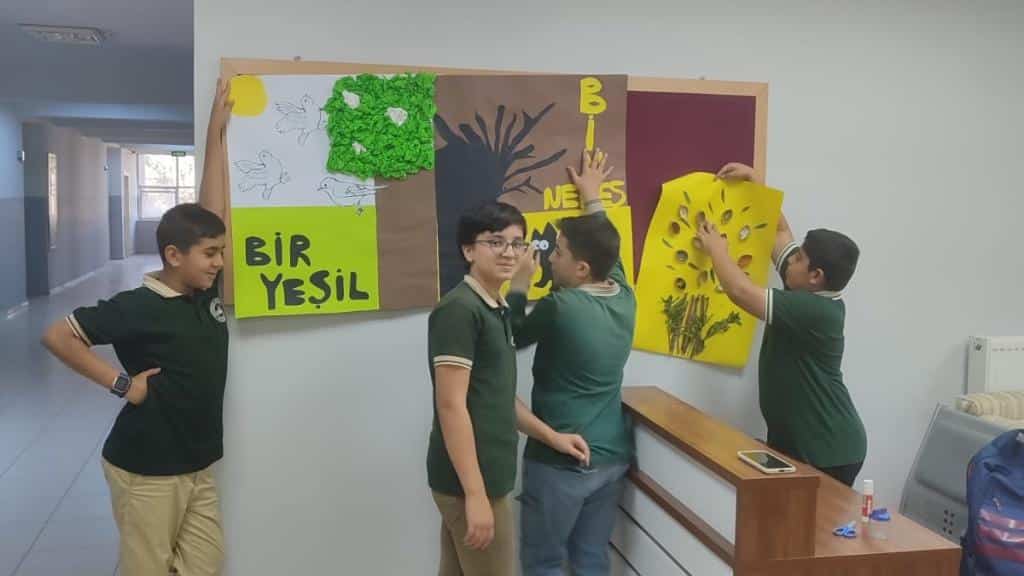 Etkinlikler kapsamında öğrencilerimizle birlikte temaya uygun pano çalışmaları yapıldı ve “Yeşil Vatan” temalı bir koro oluşturularak çevreye dair farkındalık artırıldı.